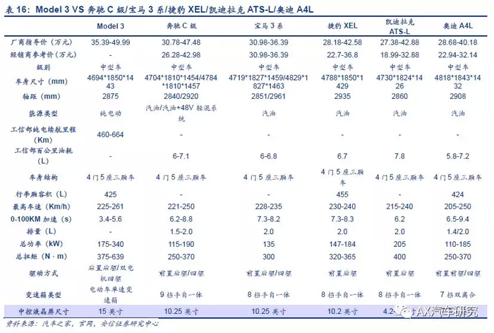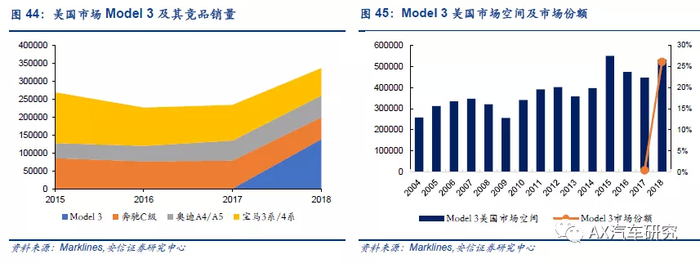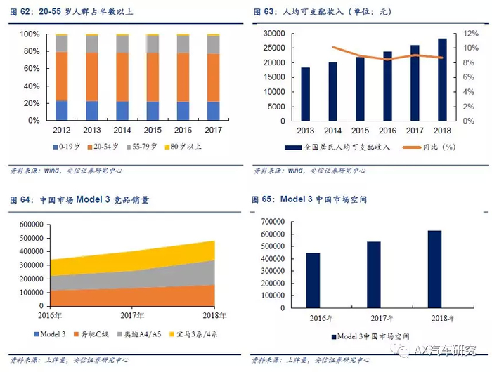 :以同价格带同类别车的销量作为Model 3在中国市场对应的市场空间。Model 3对应的中国市场空间在50-60万辆,且保持增长趋势。