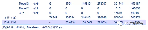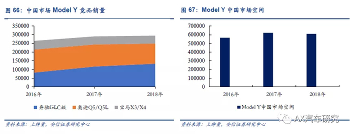 :以同价格带同类别车的销量作为Model Y在中国市场对应的市场空间。Model Y对应的中国市场空间在50-60万辆,且保持增长趋势。