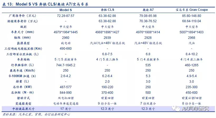 :从目前的销量数据来看,Model S在中国的上牌量略超过其竞品奔驰CLS、奥迪A7和宝马6系,但是远远不及其在美国的势头。主要原因是Model S在美国具备本土优势,且特斯拉在美国的体验店、服务中心和充电网络更密集。相比于传统豪华品牌的中大型车,Model S在动力性能、科技配置和造型设计上具有优势。Model X昂贵的售价使得其在中国的竞争能力比美国和欧洲更低,远远低于奔驰GLE、奥迪Q7和宝马X5/X6。