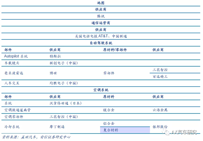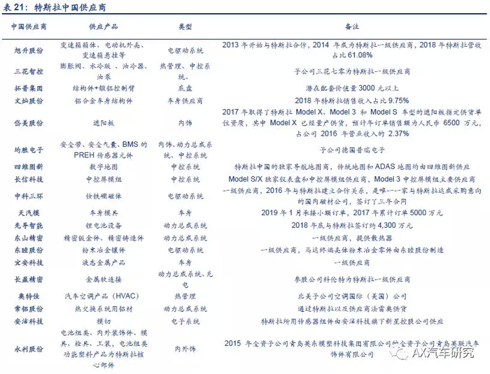 目前来看,特斯拉寻找最优的产业链配置的一个重要标准是特斯拉产业链涉及的供应商包括动力总成系统、电驱系统、充电、底盘、车身、其他构件、中控系统、内饰和外饰九个部分,涉及直接和间接供应商共计130余家,国内在上述细分领域符合特斯拉上海产业链优化利益的供应商有望受益。
