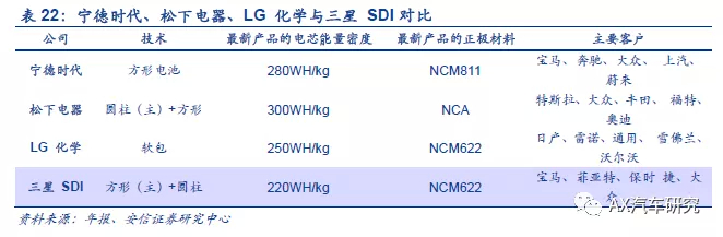第一,动力电池出货量全球第一,与松下电器、LG 化学与三星 SDI同为具备全球供货能力的四大企业。第二,与海外龙头相比,技术方面属于方形电芯能量密度第一梯队,成本上公司建立了成熟的国内电池材料供应商体系,产能利用率高。第三,国内第一,反超比亚迪。宁德时代主要走的是三元电池技术路线,而比亚迪在2017年前主推走磷酸铁锂电池路线,之后才转向三元锂电池,且自产自销。