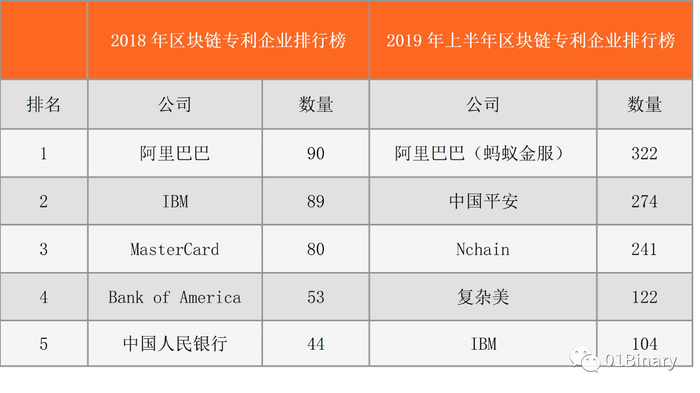 作为最早布局区块链的企业,IBM在区块链专利申请方面的表现也尤为突出。公开资料显示,2015-2017年,IBM均保持了区块链专利申请数量第一的位置,2018年,被阿里巴巴以微弱优势领先。从2019年上半年的区块链专利申请情况看,IBM已经逐渐丧失了在区块链专利上的领先优势,申请数量处于第五位。在区块链专利上,IBM已被阿里巴巴超越,但仍强于Amazon和Microsoft。