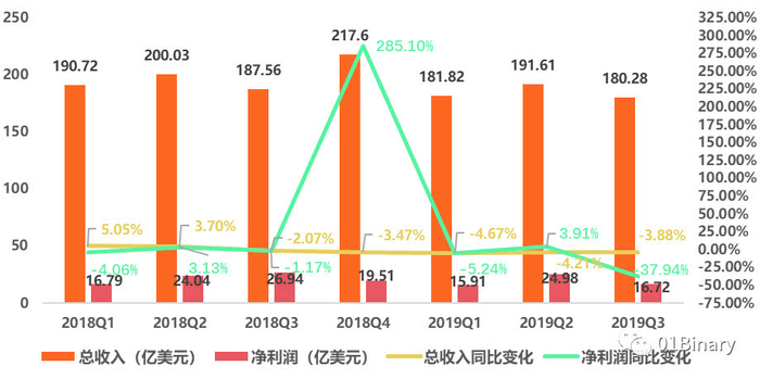 2019年10月17日,IBM公布2019年第三季度财报,营收利润双双下滑。
