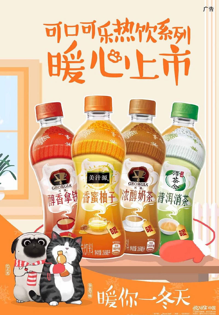 近日,饮料巨头可口可乐也开始涉足热饮市场,一口气推出了四款热饮新品,涵盖乔雅、美汁源、淳茶舍三大品牌,包括奶茶、拿铁、香蜜柚子和普洱消茶四种口味,其中奶茶和香蜜柚子是专门针对中国消费者的热饮需求而开发的产品。