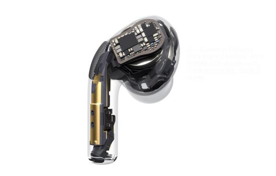 与主动降噪匹配的是入耳式设计,与耳道贴合更紧、便于降噪的同时,佩戴也更加牢固。苹果提供了三种尺寸的硅胶耳塞供用户选择。苹果称,AirPods Pro内置的H1芯片有10个音频核心,实现了极低的音频处理延迟,让实时降噪成为可能。苹果还提供了“通透模式”,用户可以关闭降噪功能,以便于通话,或需兼顾外部环境声音时使用。