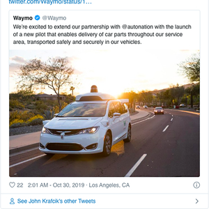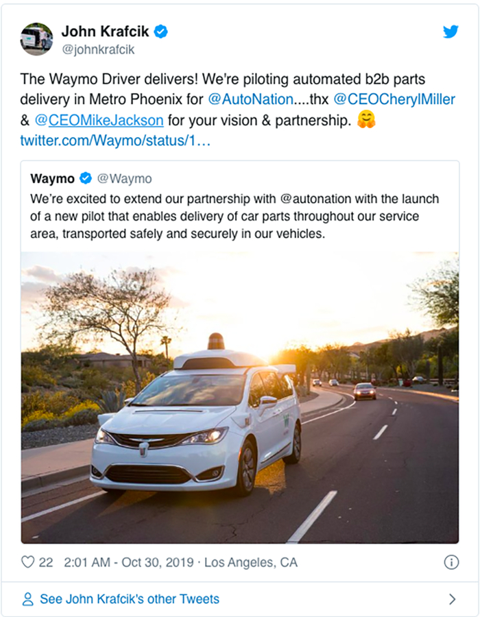 Waymo CEOJohn Krafcik推特截图