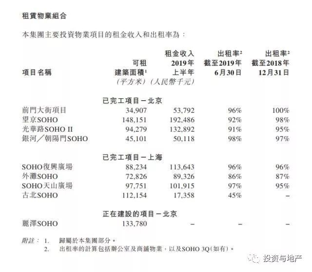 SOHO中国租赁物业情况