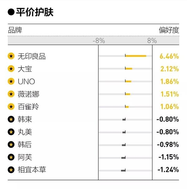 这种测评在美妆领域尤为兴盛,也将越来越多的消费者培养为“成分党”。所以不难发现,在美容护肤领域,要长久地获得消费者的亲睐,成分安全稳定、功效突出、配方有说服力都是必不可少的条件,平价和中高端护肤的第一名无印良品和科颜氏都是主打这些方面的产品。
