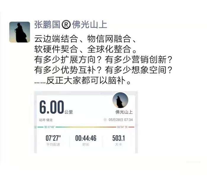 宇视科技总裁张鹏国朋友圈截图