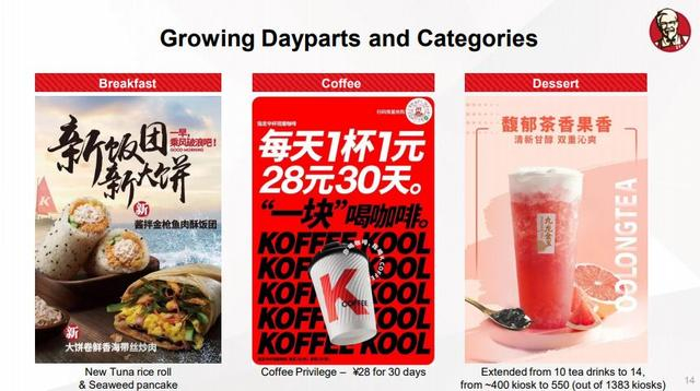 “在关键的早餐、咖啡和甜点类别上,我们也推出了令人兴奋的新品,并在数字化会员的带动下把握住交叉销售的机会。”屈翠容透露称,在权益有效期间,肯德基付费会员的消费额增长超过一倍。