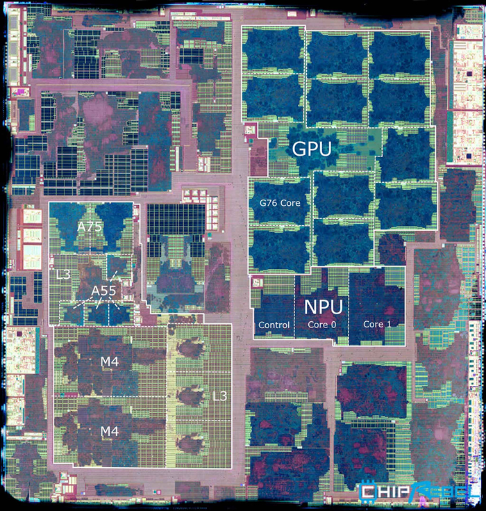 更重要的是,在Exynos 9820上,相比采用公版架构的骁龙855,三星已经占不到优势甚至已经落后了。根据ChipRebel公布的拆解照片,麒麟980上A76核心的面积为1.247平方毫米,苹果A12大核心为2.06平方毫米,三星M4的面积则高达4.04平方毫米。相比同级别的ARM公版架构,三星的猫鼬芯片,在功耗和性能上都占不到优势。