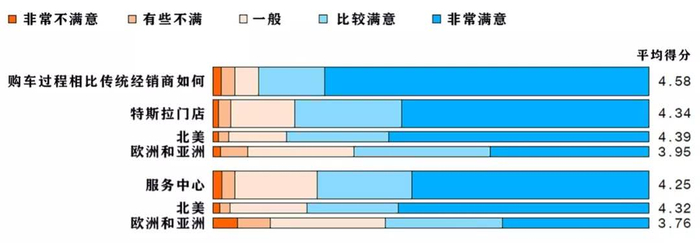 特斯拉不同形式客户服务评分