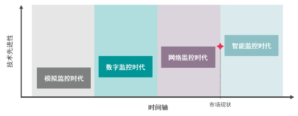 在安防技术的早期,由于存储技术落后,是没有实时监控功能的,直到盒式式录像录像(VCR)被引入,闭路电视(CCTV)才被首次用于实时监控。在数字视频时代,前端仍以模拟摄像头为主,后端将录像编码到硬盘的数字刻录机(DVR),从而淘汰了录像带,但将与日俱增的摄像头集成到一个系统上的能力,限制了大型视频监控系统的部署规模。