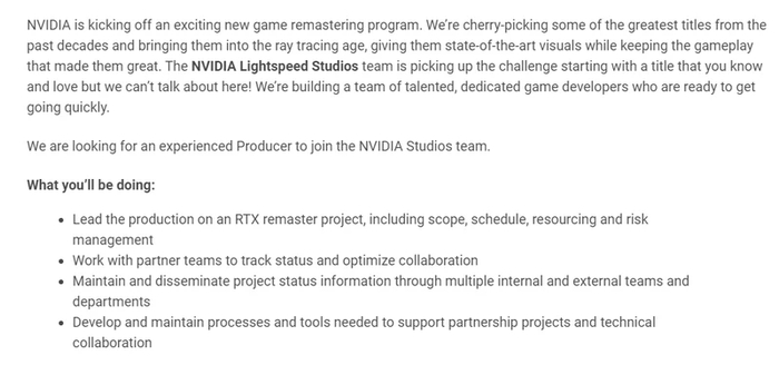 一年没有动作的英伟达更是丝毫不敢“怠慢”游戏市场,它最近一边在升级云游戏平台,一边开始加强光线追踪技术的商业化能力。10月13日,英伟达旗下的Lightspeed Studios在一份招聘启事中提到,该工作室正在展开新的游戏重制项目,旨在为过去几十年中那些伟大的老游戏提供技术支持,将它们带入光线追踪时代。
