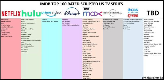 IMDB打分前100的美剧 - HBO Max,Hulu,Netflix