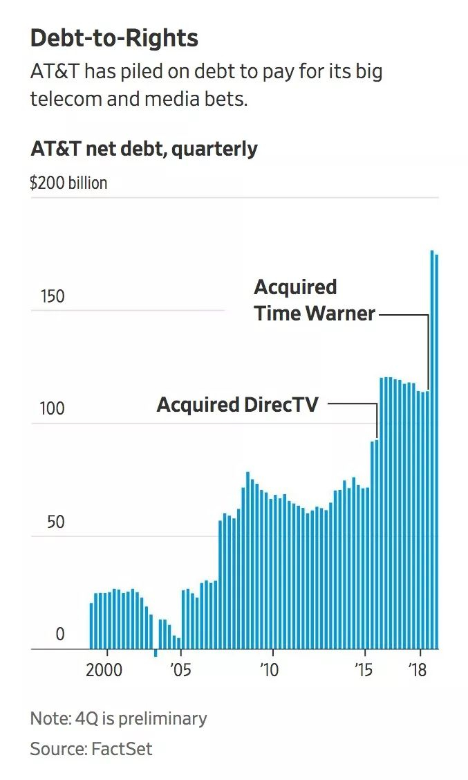 作为行业巨头,AT&T还希望能够再进一步向上游延伸,染指内容制作环节。于是在2018年,AT&T果断出手收购了陷于困境中的Time Warner(时代华纳)。