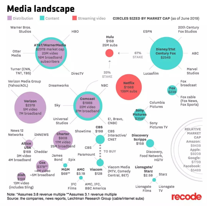 Disney/21st Century Fox,AT&T/Warner Media,Comcast, Viacom/CBS,Sony Picture, Fox,Discovery等
