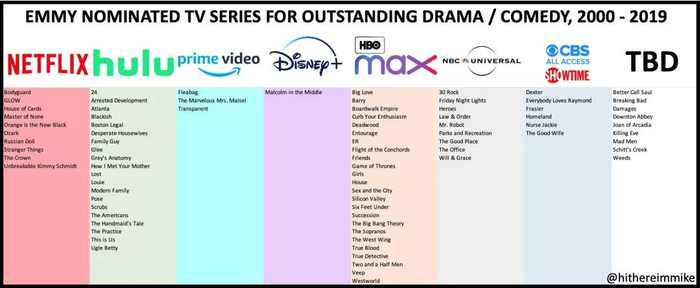 2000-2019年艾美奖提名美剧 - HBO Max、Hulu、Netflix、NBCU