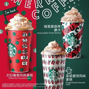 此外,另两款全新节日特饮亦不容错过:瑞雪黑森林摩卡为您轻松演绎咖啡与奶油的精彩碰撞,奶油顶上洒满如同冬日之雪般的细碎巧克力末,再现童话国度中瑞雪森林的奇幻画面。圣诞特色的姜饼风味拿铁则在奶油上铺洒了入口即溶的姜饼风味碎末,活灵活现的姜饼人仿佛闭目可见,创作一份专属于圣诞的奇妙味觉体验。