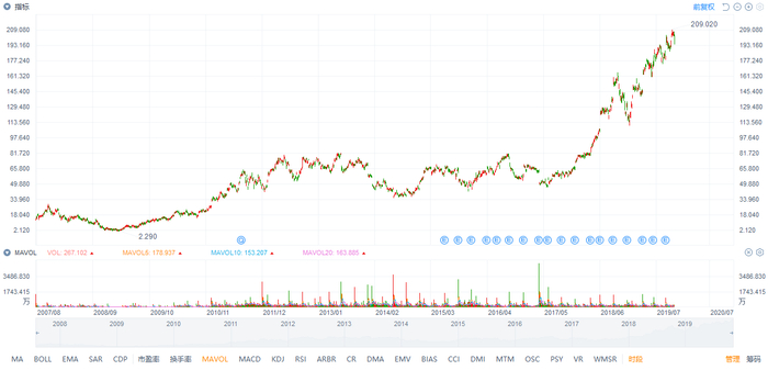 深耕于专业运动服市场的安德玛危机重重,但是同样深耕细分领域的露露柠檬表现却十分亮眼,尤其是在2016年以后,抓住细分专业以及时尚概念,股价一路向上。