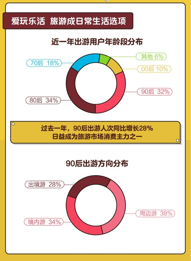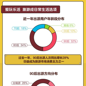 中国旅游市场持续发展,90后尤其是95后新消费主体的登场,使得个性化需求日益增多,推动目的地IP化、产品细分化趋势更明显。与此同时,旅游消费与人生阶段密切相关,随着更多90后成家生子,蜜月游、亲子游市场大有可为。在消费升级趋势下,提供更高品质、多元化的产品和服务,将有助于吸引更多追求个性和差异的年轻消费者。