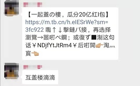 距离双十一还有5天,肖钰无论何时点进那个名为“广告互助分享”的微信群里,扑面而来的都是不断弹出地整段整段的“神秘代码”。这些代码兵分两路,第一类几乎全是火星文,但没有人看不出 “瓜分20亿”“帮我盖楼”等关键词,这是淘宝的盖楼活动信息;第二类文字在这两天突然爆发式出现,它既有可能以“我上初二那年,没有人人微博微信,大家还很单纯” 开头,也可能以“有人@你”这种极具欺骗性的语句作为开头,而整段文字里最核心的不过是“点击链接或者复制整条信息,打开【拼多多App】就可以帮我提现啦!”