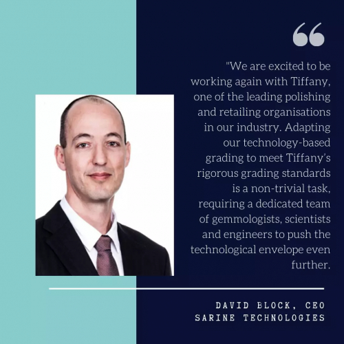 Sarine钻石科技集团首席执行官大卫·布洛克(David Block)表示:“Tiffany是行业领先的抛光和零售企业之一,我们很高兴能与Tiffany再度合作。调整我们基于科技的分级系统以符合Tiffany严格的分级标准是一项意义重大的任务,它需要一个由宝石学家、科学家及工程师所组成的专项团队来挑战创新、突破极限。”