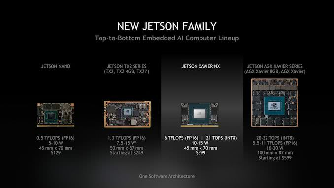 纵观整个Jetson系列产品中,Jetson Xavier NX扮演了“承上启下”的角色,它比“老大哥”Jetson AGX Xavier的尺寸更小,更便宜,又比另外两个“小弟”的处理速度快很多。