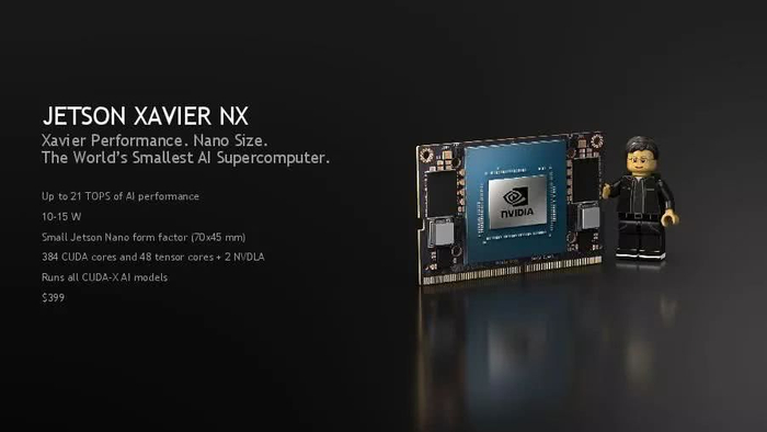 英伟达放出AI大招,他们发布了史上最小、功能最强的边缘AI超级计算机Jetson Xavier NX,一款只有一张银行卡大小的硬件,可以在15W的功耗下提供高达21 TOPS的计算,而且只需399美元,就能带回家。