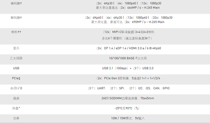 算力:14 TOPS(功耗为10W时)或21 TOPS(功耗为15W时);