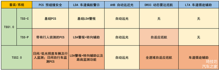 简单总结下,TSS 1.0是丰田TSS的初代系统产物,这套系统能够有C和P两种不同的分支系统,TSS的功能随着技术的进步与进化,更多的功能以及更成熟的逻辑让新车型享受到了重新进化的TSS 2.0系统。个人觉得,未来搭载TSS 1.0的车型在中国市场换代时,也有很大的几率在改款车型上见到更新的TSS 2.0甚至TSS 3.0系统。