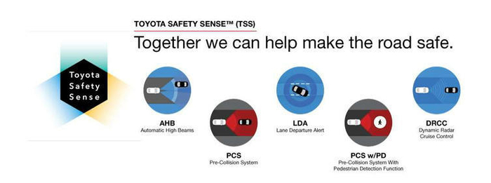 丰田的主动安全系统名为Toyota Safety Sense,简言之就是TSS系统,这套系统通过摄像头、雷达以及车辆ECU来获知周遭环境以及当前车辆状态,通过警示以及驾驶干预来规避事故,最终目的是让驾驶变得更安全