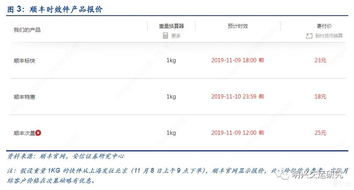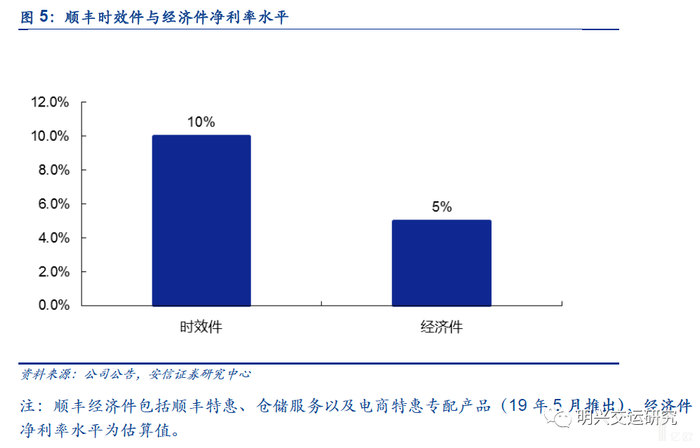 盈利水平明显高于物流快递其他细分市场。考虑到目前商务件市场价格总体平稳,以及效率提升,顺丰时效件仍能保持较高净利率水平。