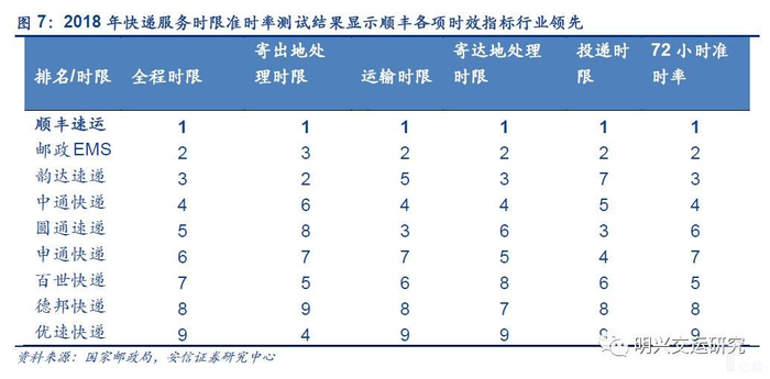 1)对于通达系,在中短途时效已与顺丰接近,但在服务的稳定性上顺丰仍具备较大优势;
