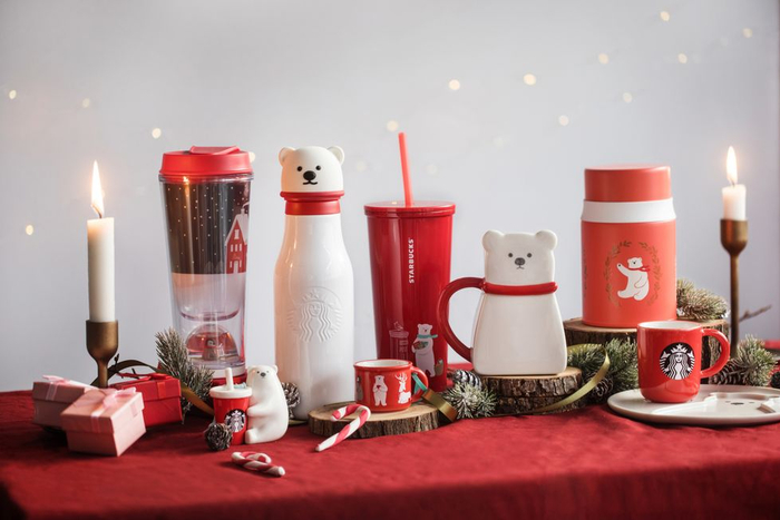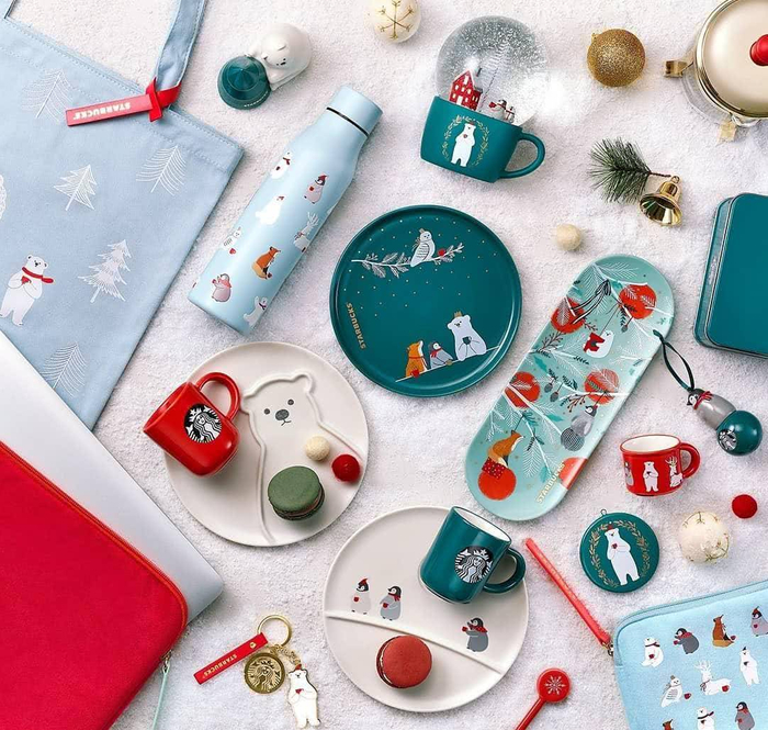 台湾地区的星巴克在今年一下子推出了100多种产品……以Merry little holiday party为主题,北极熊为主角,以及企鹅、海豹、狐狸好朋友们一起,涵盖马克杯、随行杯、水晶球等各类单品。