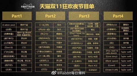 昨晚,天猫双11狂欢夜节目单恢弘出炉!