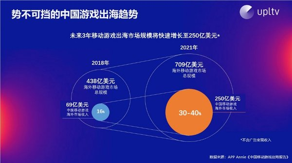 未来3年移动游戏出海市场规模将快速增长至250亿美元,预计到2021年中国移动游戏海外市场收入在海外移动市场总规模占比将达到30%-40%,而这仅仅是内购的收益,尚未纳入广告变现的收益。