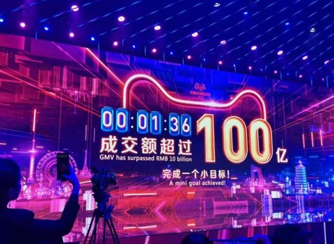2019天猫双十一,仅用时21秒,成交额突破10亿元 1分36秒,天猫双11成交额突破100亿元。而2018年天猫双11突破100亿的时间是2分零5秒。