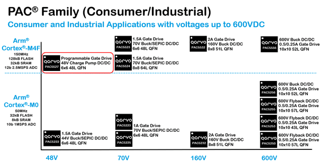 最近,基于Active-Semi的技术,Qorvo推出了新款的PAC5527电源应用控制器。在这个SoC中,集成了基于FLASH 的高性能150MHzArmCortex-M4F、128kBFLASH、电源管理模块、可编程电流高端和低端栅极驱动器和信号调理模块。相比于竞争对手解决方案,此组合可显著节省PCB 空间并将BOM 缩减达30%。而借助其高性能MCU,设计人员能够增添其他增值功能,如安全标准、诊断和自检功能,从而增强整个系统的可靠性。消费者也将从更轻、更紧凑、更可靠且具有较长电池寿命的电子设备中受益。