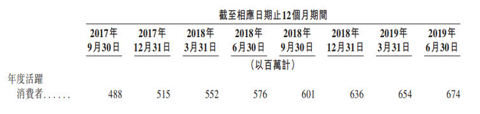 (1) 截至2019年6月30日止12个月期间的去重后中国消费业务年度活跃消费者与蚂蚁金服中国年度活跃用户之总和。