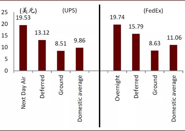图表: UPS国内航空隔夜包裹更具有价格优势
