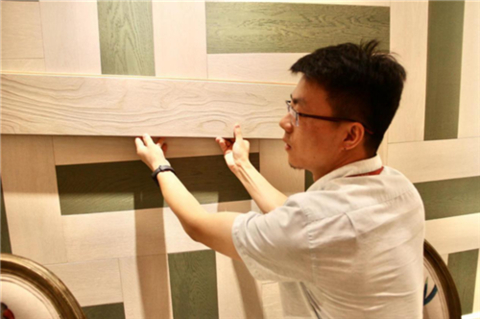 “来感受一下,产品是有温度的!”他认为,木地板产品不能过度的强调工业化生产,也不能完全以工业化的指标去衡量它的产品价值。“现在地板行业的很多标准都过度工业化、机械模式化了,如果只是苛刻的去追求某些数值,我们可能会失去木质本身的价值与美感。”他认为木头木作为千百年来流传的家居材料,是具有文化传承性的,他还认为木是人与大自然沟通的重要介质,木头这种个材料是有他非常大的优点,也有一些固然的缺点的,但任何事物都需要讲求“度”,木质品更是如此,在最大化保留木材美感和调节空气温湿度等天然功能的前提下,适度提升其稳定性和耐用性等工业属性的范围内追求卓越,这是庄文勇在多年的研发经验中所感所受。