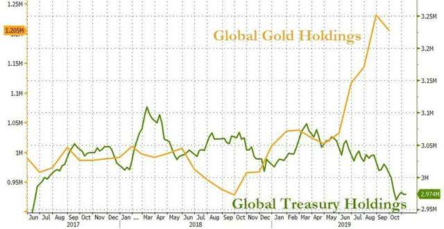 全球美国国债持有量暴跌,黄金储备一直在增加