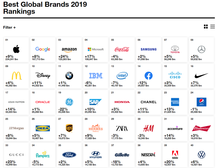 一图流 | 2019世界顶级品牌百强榜:中企仅华为上榜