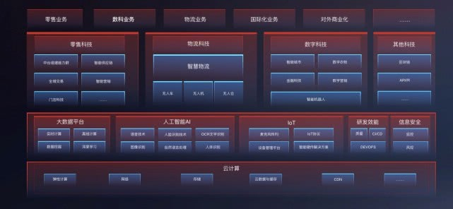 比如在零售技术体系中,京东已拥有中台组件能力群、智能供应链、全域交易、智能营销、门店科技等技术;在物流技术中,京东以无人仓、无人车、无人机等构建起智能物流体系;在数字科技中,京东已形成金融科技、智能城市、数据技术等体系;在云计算、AI、IoT等领域,京东均有成熟布局。