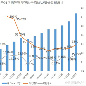 与此同时,哔哩哔哩在该报告期内的平均MAU同比增长38%至1.279亿,环比增长高达15.85%,实现了月活用户创单季度最高净增长。