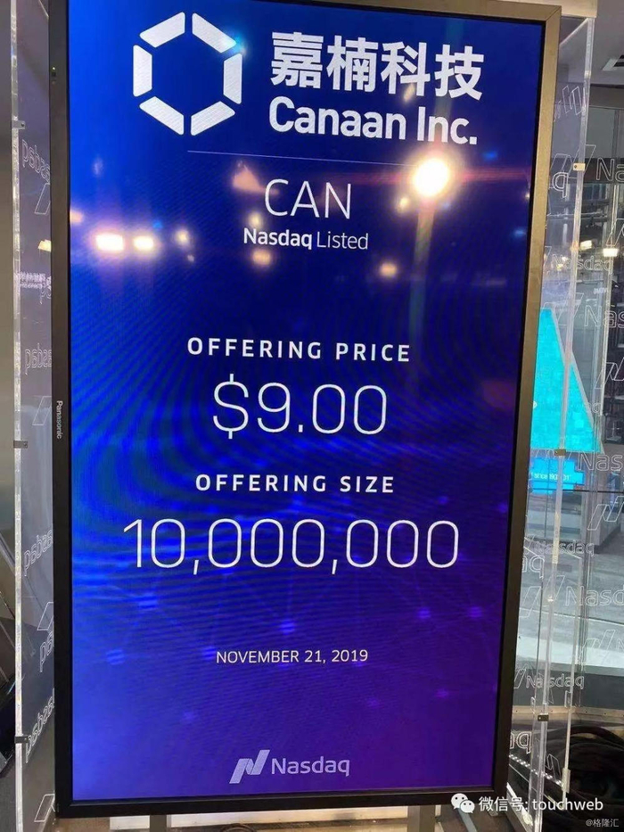 嘉楠canaan昨日在美国纳斯达克成功上市,股票代码为“CAN”。嘉楠发行价为9美元,募集资金为9000万美元。