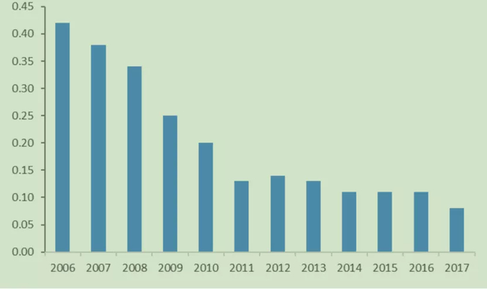 2006-2017年,我们还可以看到,申洲的万元产值能耗也在持续下降。