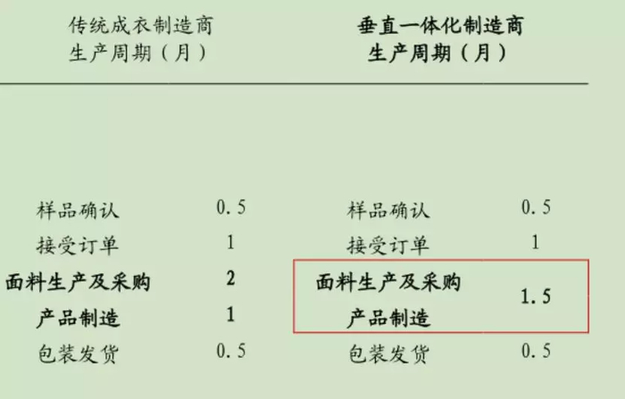 这是服饰代工行业中大部分中小企业的做法,这一模式完成核心流程至少3个月。而申洲全产业链垂直整合下的一体化模式,各个环节“无缝衔接”的特点,可以把工期缩短到1.5个月。