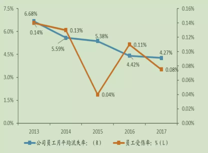 图:申洲国际员工流失率与受伤率,来源:兴业证券